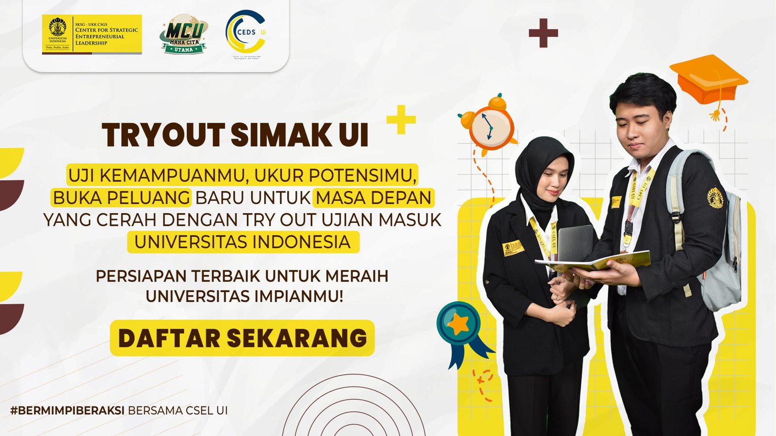 Universitas Indonesia adalah salah satu perguruan tinggi terkemuka dengan reputasi yang sangat baik di tingkat nasional maupun internasional. Mahasiswa UI memiliki akses terhadap pendidikan berkualitas tinggi, fasilitas yang modern, dan lingkungan belajar yang inspiratif. Menjadi mahasiswa UI bukan hanya tentang memperoleh gelar akademik, tetapi juga tentang mempersiapkan diri untuk menjadi pemimpin masa depan yang berpengaruh dan berkualitas.